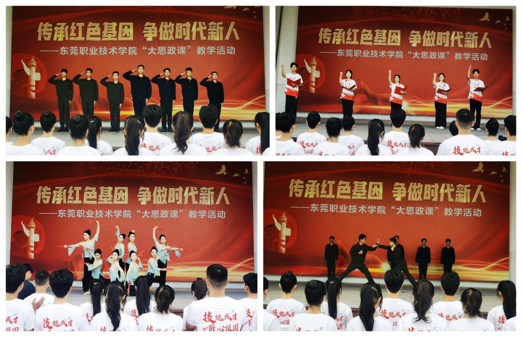 现场教学之后,同学们怀着饱满的热情与对先辈的敬仰,进行了精彩的军事技能展示《军体拳》《擒敌拳》和《匕首操》,感情充沛地朗诵《技能成才、强国有我》和弘扬中华优秀传统文化的英歌舞《花木兰》,充分表达了以实际行动参军报国、技能强国、文化兴国的浓厚爱国情怀。