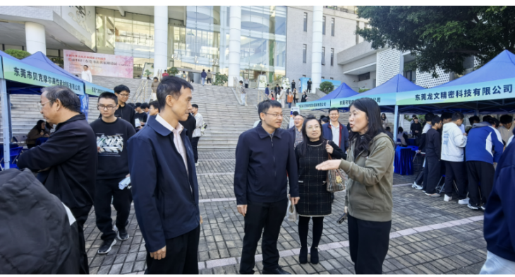 会上,李浩泉处长对参加活动的领导和代表表示热烈的欢迎,同时介绍了我校基本情况和就业情况,期待未来与更多的企业交流合作,强化协同育人,让学校的人才培养和社会需求、企业发展更为匹配。赵丽萍主任代表东莞市人力资源和社会保障局对参加本次活动的各位领导、代表表示欢迎和感谢,人社将打造“1+8+100+N”长效服务机制,助力毕业生就业。东莞市首批“就业观察员”聘任仪式及东莞市公共就业服务校园联络站揭牌仪式随后开展。领导及企业代表还参观了我校学生事务与就业服务中心,对我校学生就业服务工作给予充分的肯定。