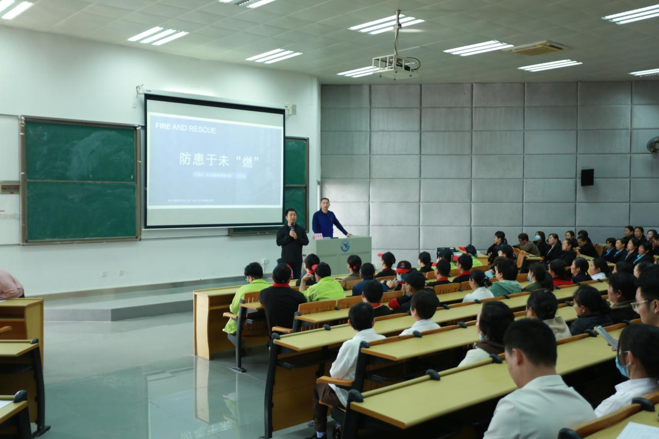 消防安全知识培训的课上,方宏杰教官根据学校消防重点部位工作人员岗位特点,结合近期典型火灾事故案例,通过火灾现场图片、视频对校园各重点部位的火灾危害、火险识别、隐患排查等方面进行了详细讲解,指导培训人员如何加强火灾防范,如何提升自救互救技能,以及灭火器、灭火毯、防毒面具的使用方法。