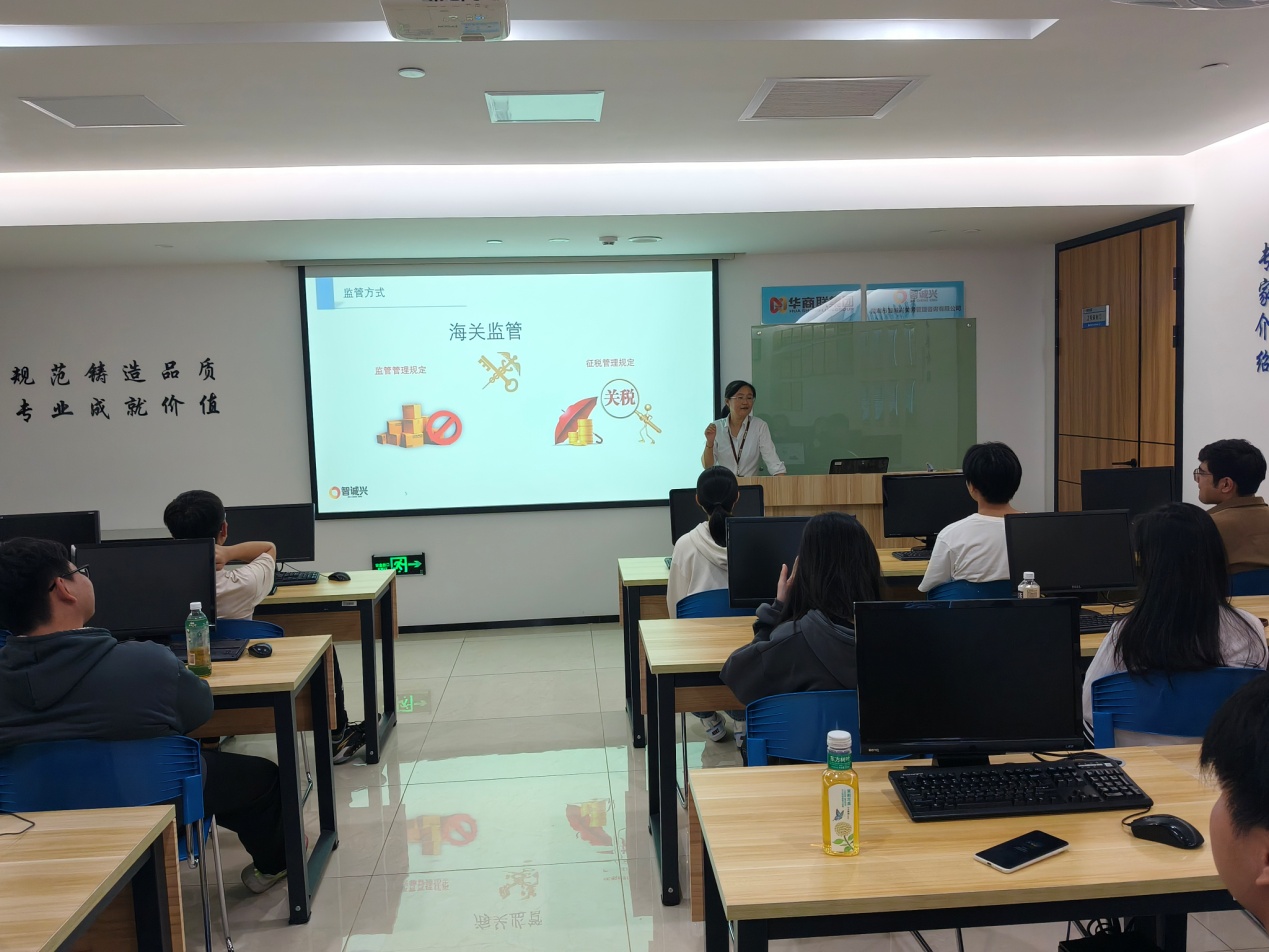 学生们分批参观了海关报关大厅,体验进出口货物申报、查验等物流业务的实际操作流程,感受报关作业流程的严谨性、专业性和高效性。随后,学生们到深圳华商联物流报关有限公司进行参观,了解国际物流进出口业务的职业环境与工作流程,体会物流行业的高效运作和严格管理。