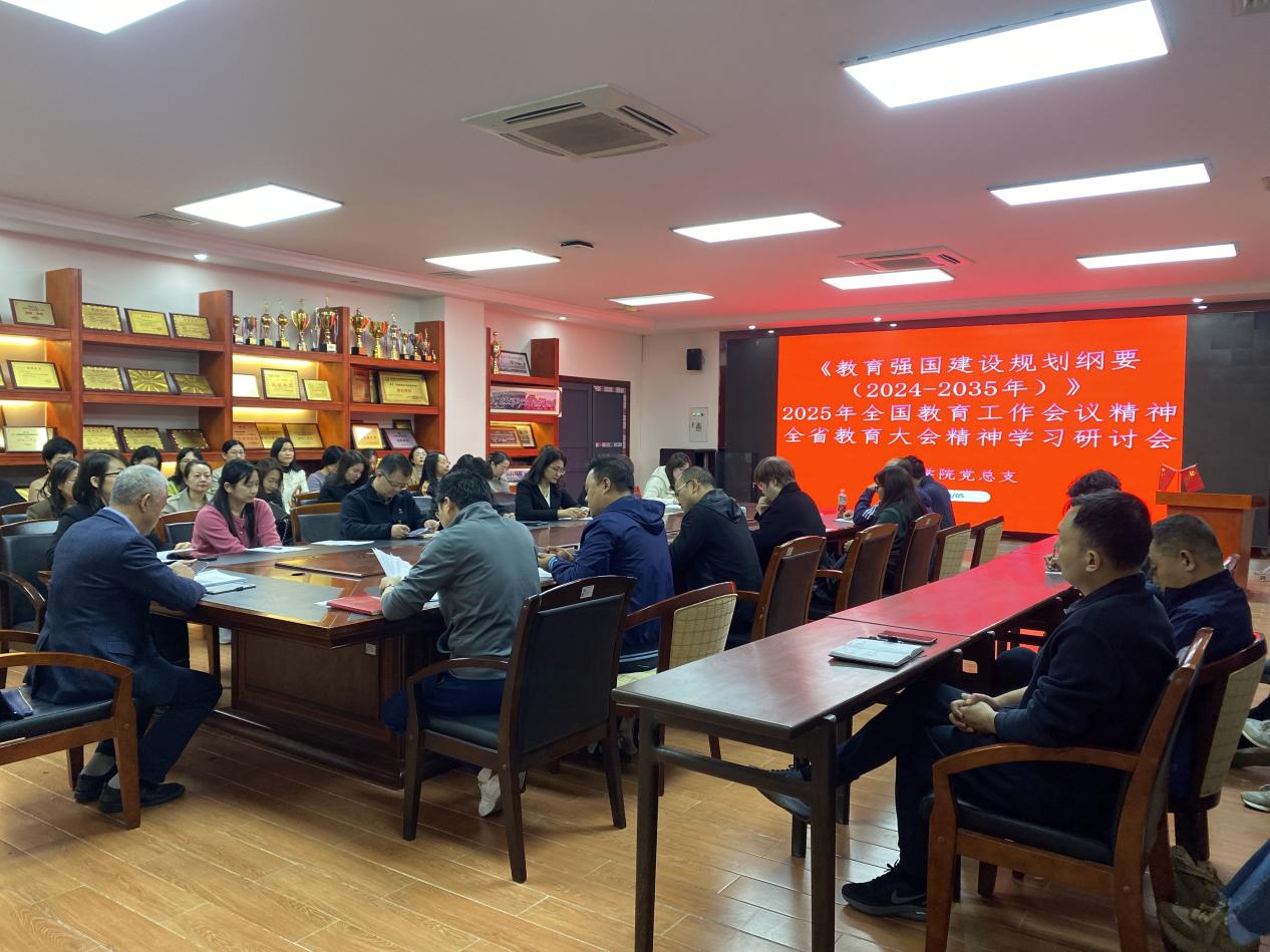 为深入学习贯彻《教育强国建设规划纲要(2024-2035年)》、2025年全国教育工作会议和全省教育大会精神,切实把思想和行动统一到党中央、国务院和省委、省政府关于教育工作的决策部署上来,3月5日,我校商贸学院举办了专题学习研讨会,学校党委委员王志明、商贸学院党总支副书记袁少锋、副院长戴航、徐兰及全体教职员工参加了研讨会。