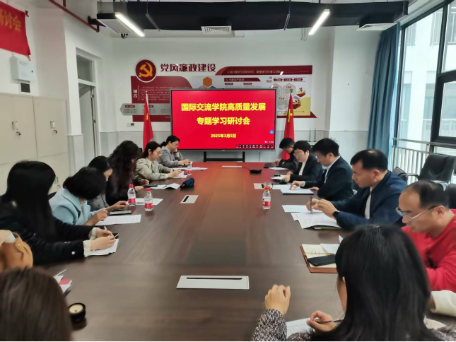3月5日,国际交流学院举行专题学习研讨会,学习《教育强国建设规划纲要(2024-2035年)》、2025年全国教育工作会议精神、全省教育大会精神,国际交流学院党总支书记李玮炜、专职副书记曹益军、副院长史淑琼及全体教职工参加了会议。会议由学院专职副书记曹益军主持。