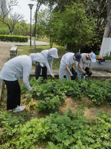 师生们在药植园采摘艾草