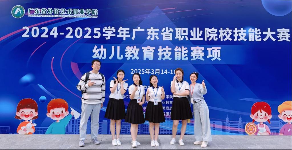 近日,2024-2025学年广东省职业院校技能大赛(高职组)幼儿教育技能赛项结果公示,我校学前教育专业学生樊琳、肖楚贤、江雪茹、洪洁莹组成的参赛队伍,在龚梦婷、林一叶两位教师的悉心指导下,经过激烈角逐,最终从全省51支参赛队伍中脱颖而出,荣获团体二等奖。