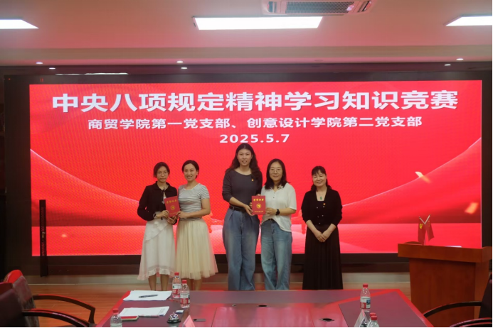 5月7日下午,我校商贸学院第一党支部与创意设计学院第二党支部在8C209联合举办中央八项规定精神知识竞赛。本次竞赛旨在深化党员对中央八项规定精神的理解与贯彻,通过以赛促学,营造积极的学习氛围。