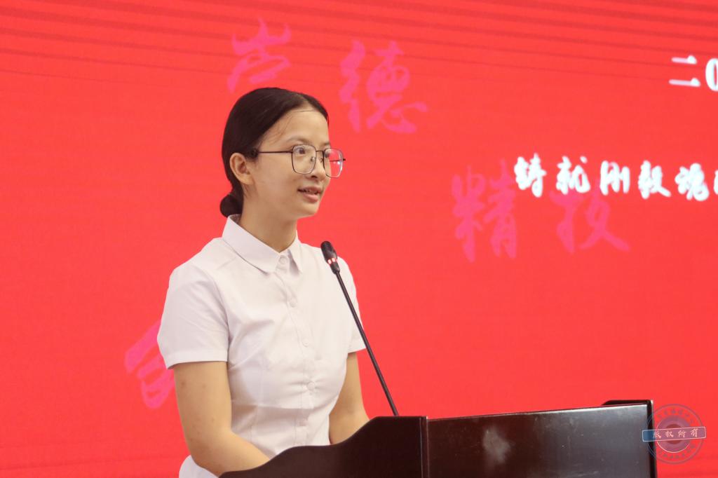 大会在庄严的国歌声中拉开帷幕。新生代表25级机械协同1班周妍婷上台发言,她表达了对军训生活的期待与决心,对学校“崇德、笃行、精技、创新”育人理念的认同,以及对学院“双高计划”专业群建设成果的自豪,将以饱满热情投入军训,在烈日与汗水中锤炼意志、学会协作,以严谨态度遵守纪律,以坚韧品格迎接挑战,用实际行动展现智能制造学子的青春风采。