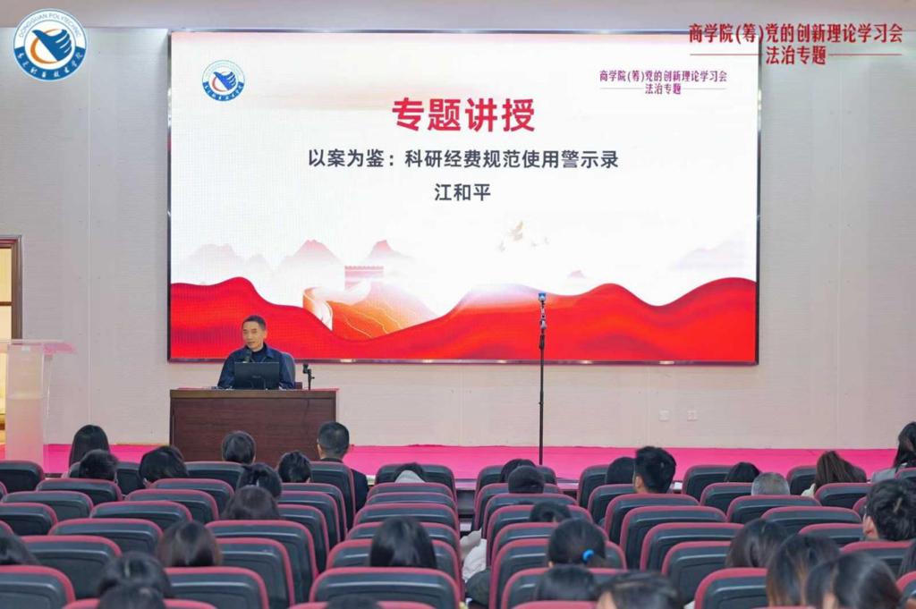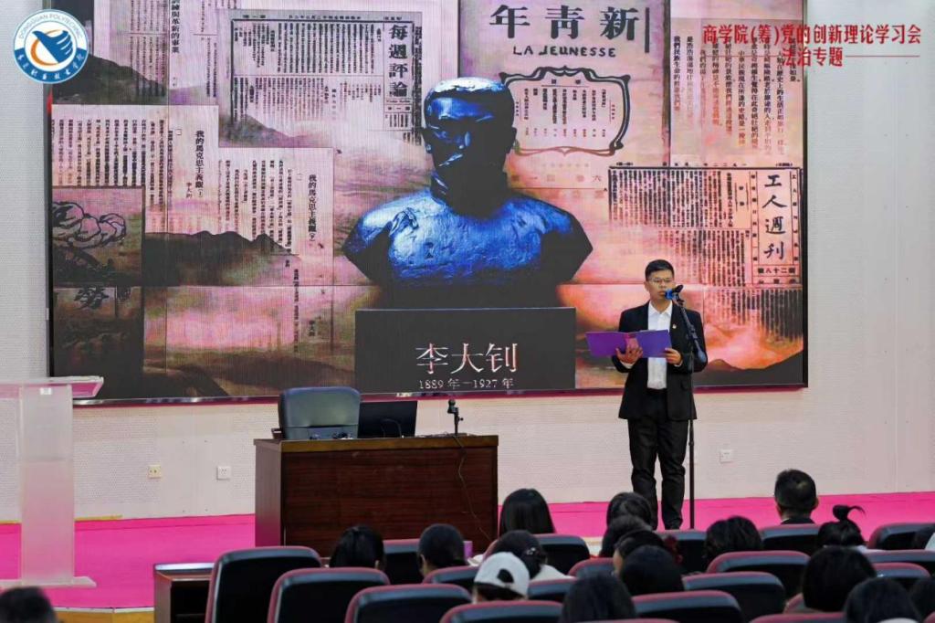 11月20日,理论学习在东莞职业技术学院图书馆学术报告厅举行,马克思主义学院副院长王伟率先开讲,以“坚持以习近平法治思想为指导 推进全面依法治国行稳致远”为主题,系统阐释了习近平法治思想的核心要义与实践要求,为全体教职工筑牢法治理论根基;方烨老师创新采用情景剧《从直播带货陷阱解读〈消费者权益保护法〉》结合现实案例,增强法治教育的生动性;在红色经典读书分享环节,何景师、李毅鹏、唐雷、麻欢、叶善椿等老师及学生预备党员代表则通过致敬李大钊、方志敏等革命先烈,弘扬信仰与忠诚精神;江和平老师以《以案为鉴:科研经费规范使用警示录》进一步强化教职工的法治规范意识。