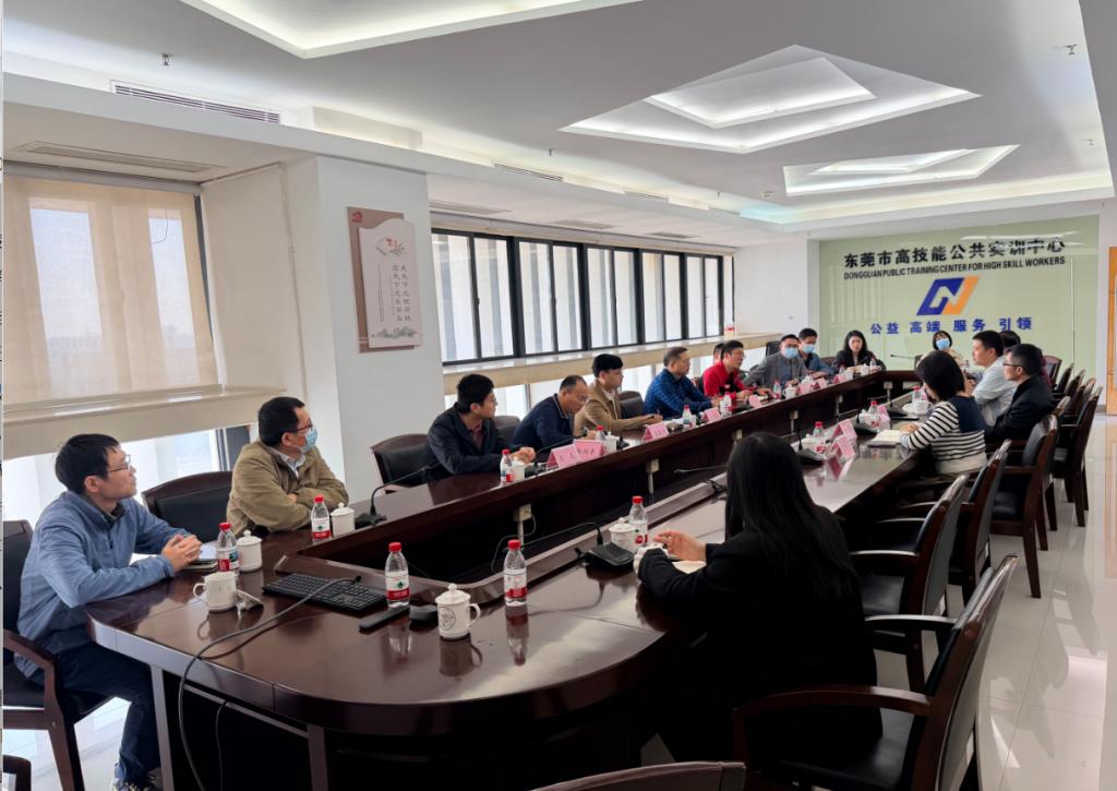 东莞市高技能公共实训中心主任李伟锋主任对我校交流团队的到访表示欢迎,并围绕如何建设国家级高技能人才培训基地、如何规避建设过程中的风险作了经验辅导。随后,双方聚焦体制机制创新、中央财政资金使用管理规范、技能人才培养与认定、标志性成果培育以及辐射带动作用发挥等重点内容进行探讨交流。通过学习交流,我校项目团队对如何结合地方产业优势和学校实际,打造具有特色的高技能人才培养体系有了更清晰的认识。