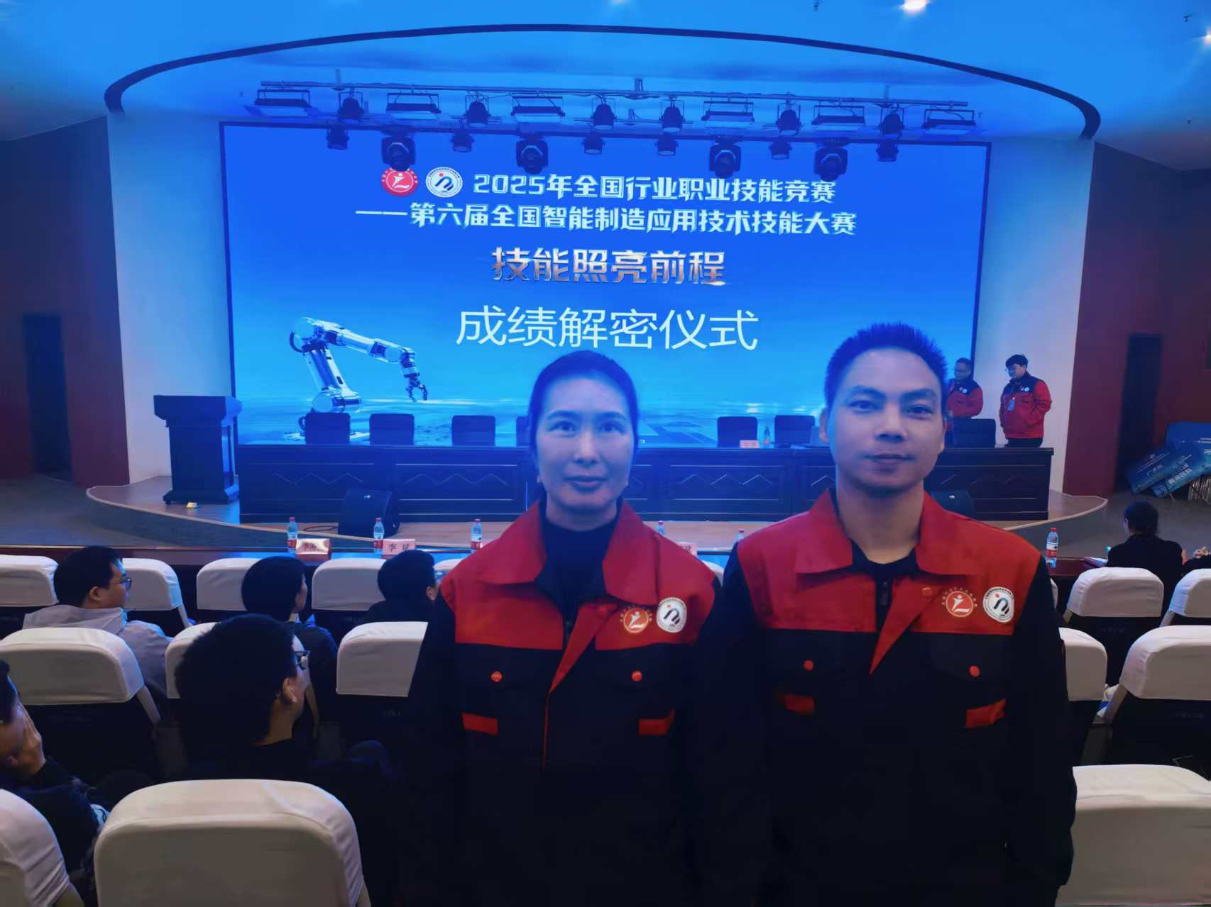 本次技能竞赛比赛内容包括冲压模具设计、机器人产线编程与调试、CNC编程加工、模具装配、产品冲裁、智能产品检测分析等模块。综合考核教师的专业知识、数字化设计和制造能力。我校智能制造学院李笑勉和张燕琴两位教师在本次比赛中表现出色,荣获该项目职工组(团体赛)铜牌。