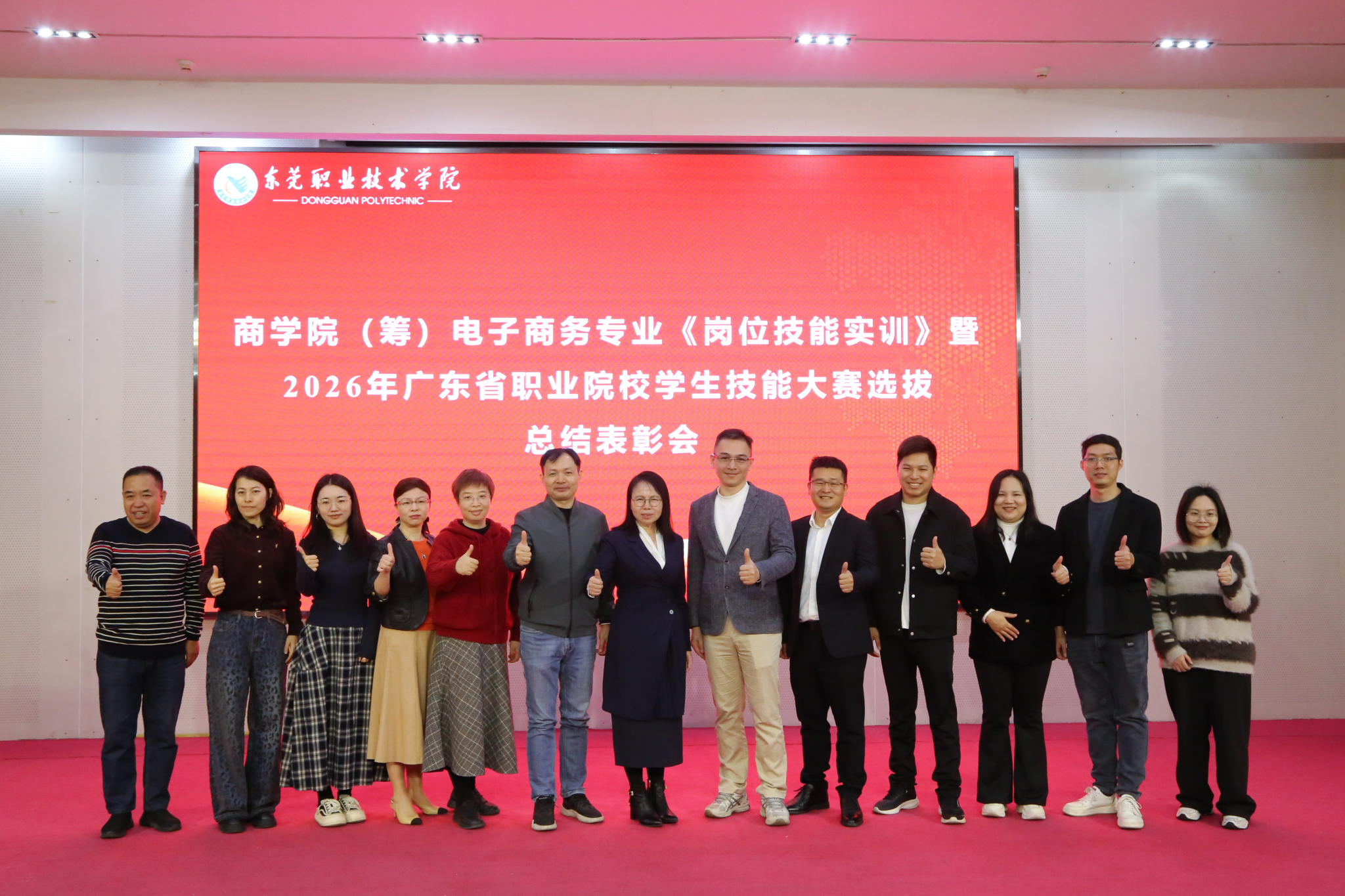 1月16日上午,我校商学院(筹)在图书馆报告厅举行电子商务专业《岗位技能实训》暨2026年广东省职业院校学生技能大赛选拔总结表彰会。广东中科鸿泰新材料有限公司副总裁马伟杰一行、商学院(筹)行政负责人周虹教授、电商专业全体教师及24、25级电子商务专业学生共同参与了此次活动。