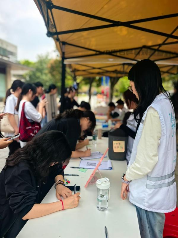 活动设置朋辈倾听、情绪沙包、爱心折纸三大趣味板块。朋辈小队借助OH卡、答案之书等工具,耐心陪伴同学们倾诉心声、舒缓情绪;大家将烦恼写在卡片上包裹沙包投出,在轻松互动中释放压力;一张张爱心与千纸鹤承载着暖心寄语,在校园里传递善意与温暖,现场氛围温馨又热烈。不少同学表示,在活动中卸下了疲惫与焦虑,收获了满满的幸福感。