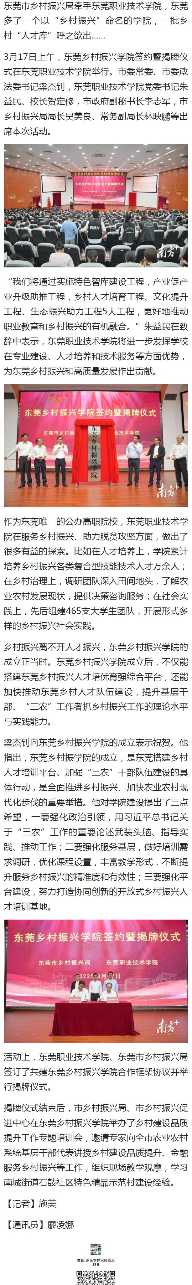 【南方+】东莞乡村振兴学院揭牌成立,五大工程培育乡村“人才库”