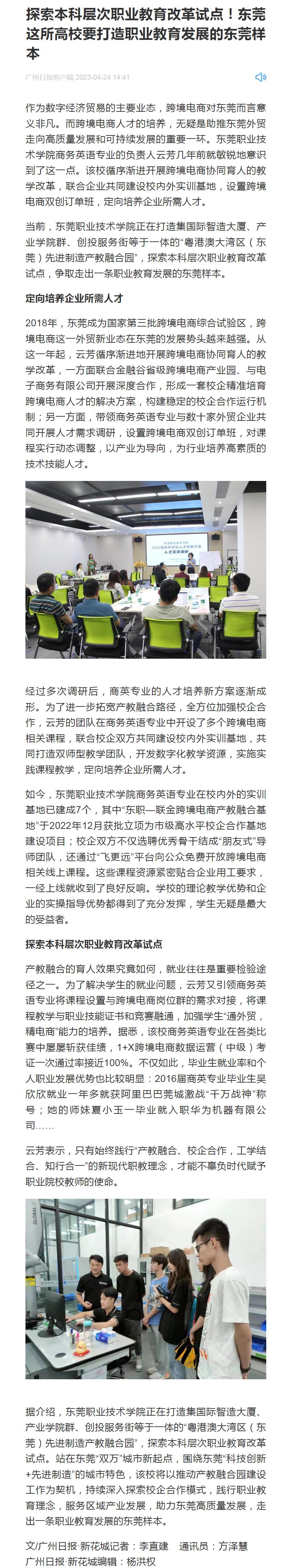【广州日报】探索本科层次职业教育改革试点!东莞这所高校要打造职业教育发展的东莞样本