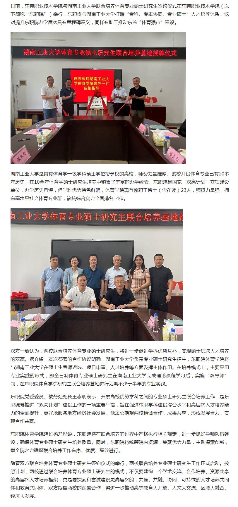 【东莞+】东职院与湖南工业大学签订联合培养体育专业硕士研究生协议