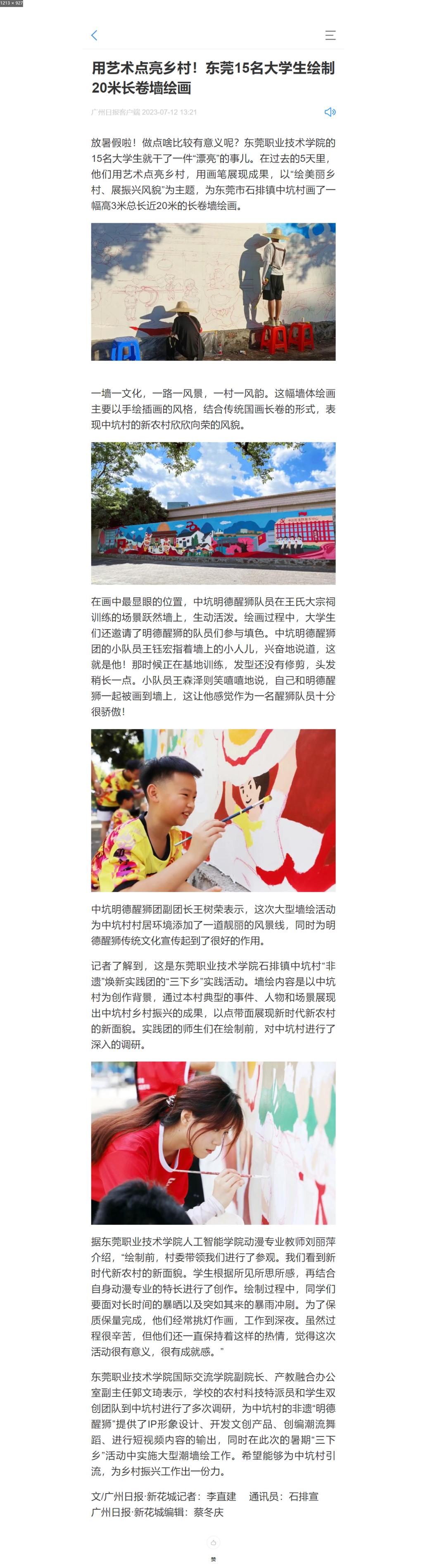 【广州日报】用艺术点亮乡村!东莞15名大学生绘制20米长卷墙绘画