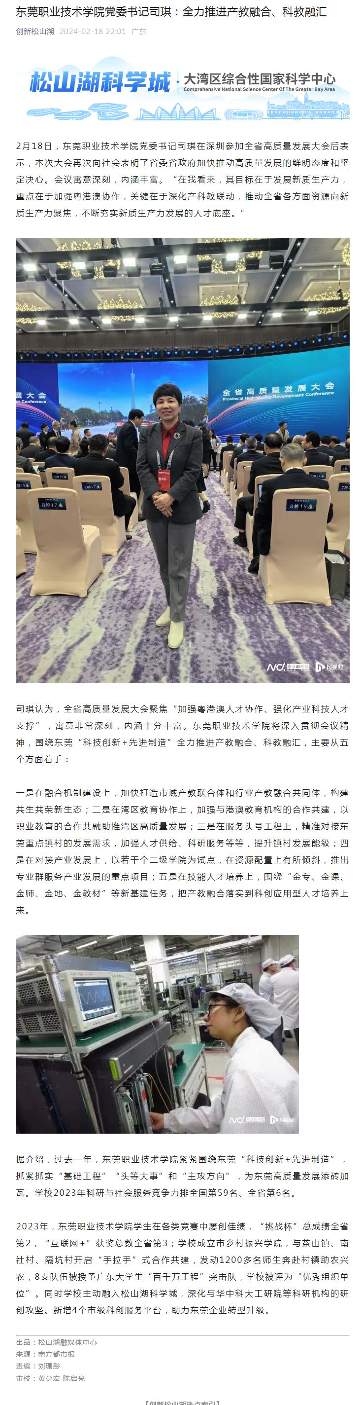 【创新松山湖】东莞职业技术学院党委书记司琪:全力推进产教融合、科教融汇