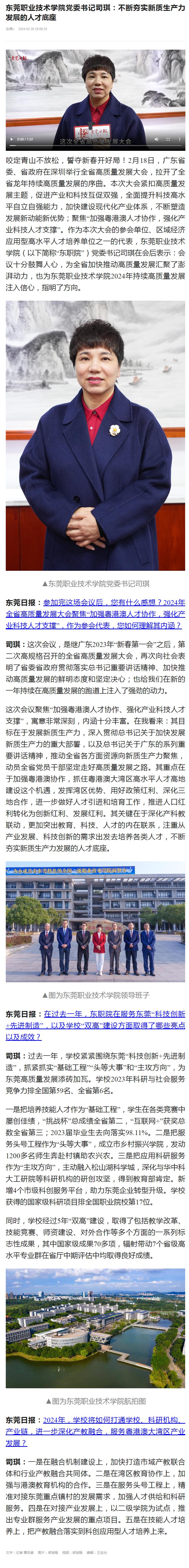 【东莞日报】东莞职业技术学院党委书记司琪:不断夯实新质生产力发展的人才底座