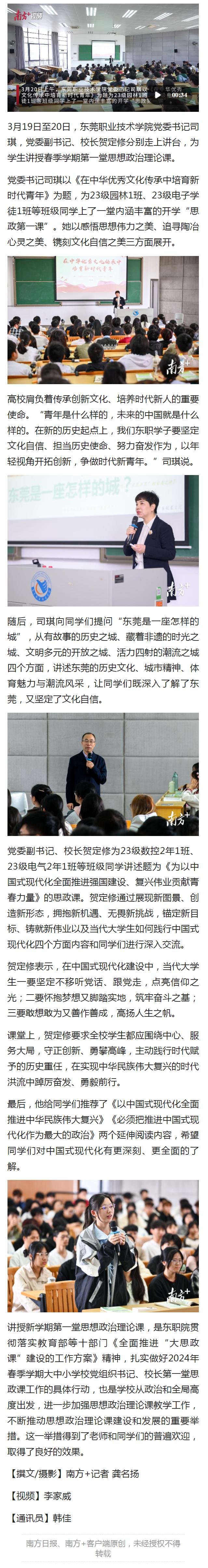 【南方+】东职院书记校长开讲春季学期 “思政第一课”
