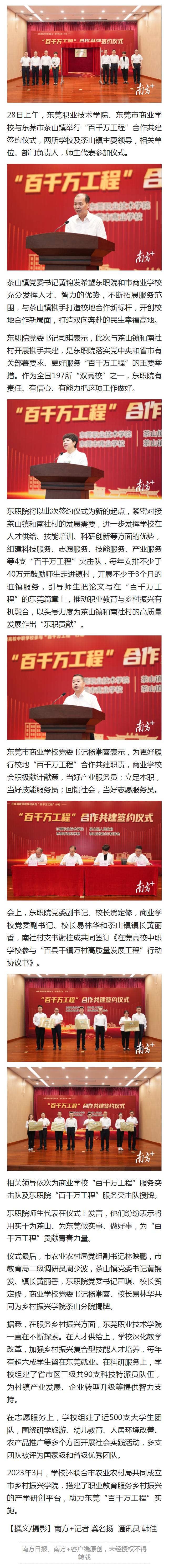 【南方+】校地签约共建,东莞为“百千万工程”注入职教力量
