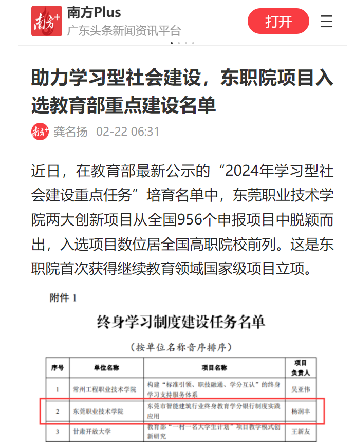 【南方+】助力学习型社会建设,东职院项目入选教育部重点建设名单