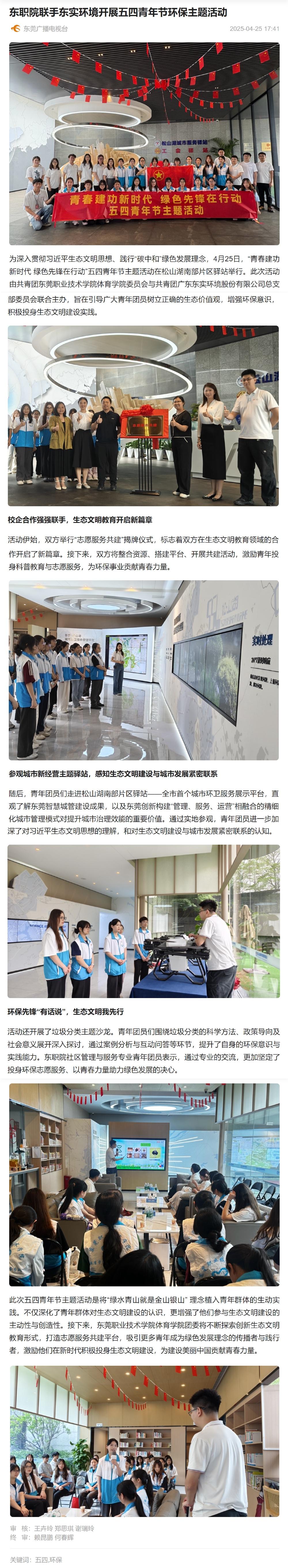 【东莞广播电视台】东职院联手东实环境开展五四青年节环保主题活动