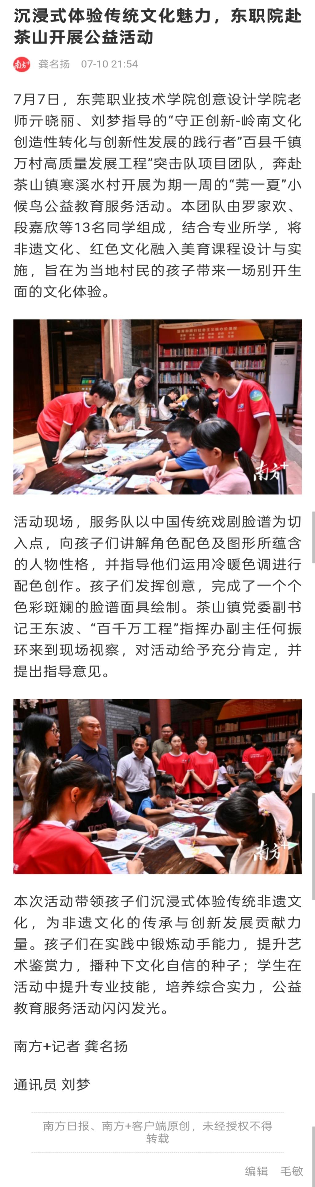 【南方+】沉浸式体验传统文化魅力,东职院赴茶山开展公益活动