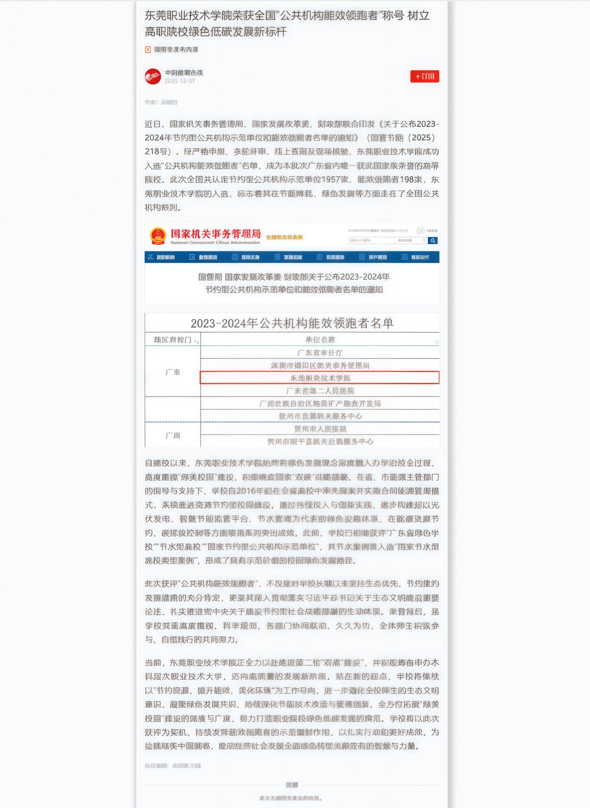 【学习强国】东莞职业技术学院荣获全国“公共机构能效领跑者”称号 树立高职院校绿色低碳发展新标杆