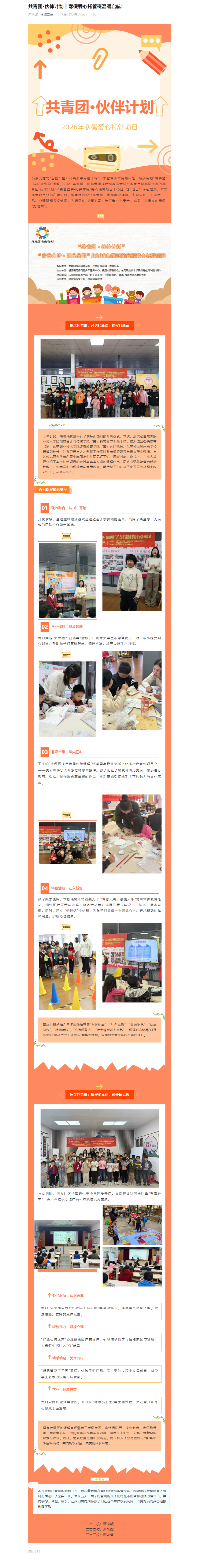 【横沥青年】共青团·伙伴计划丨寒假爱心托管班温暖启航!