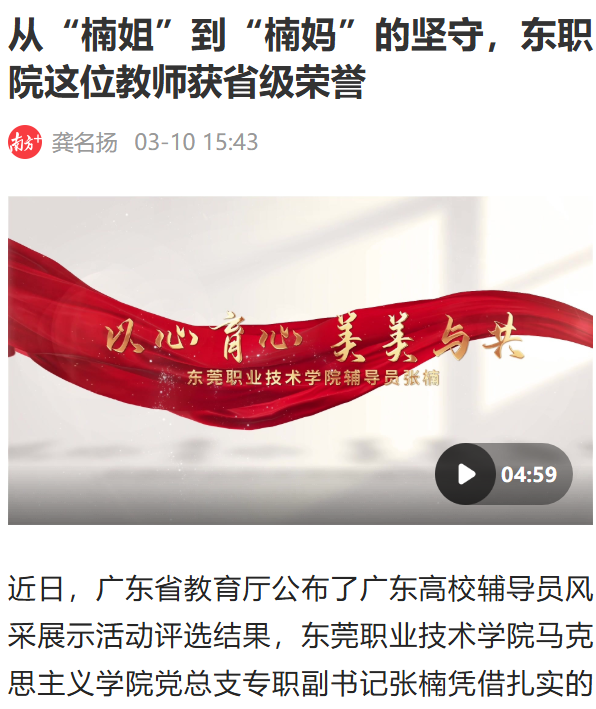 【南方+】从“楠姐”到“楠妈”的坚守,东职院这位教师获省级荣誉