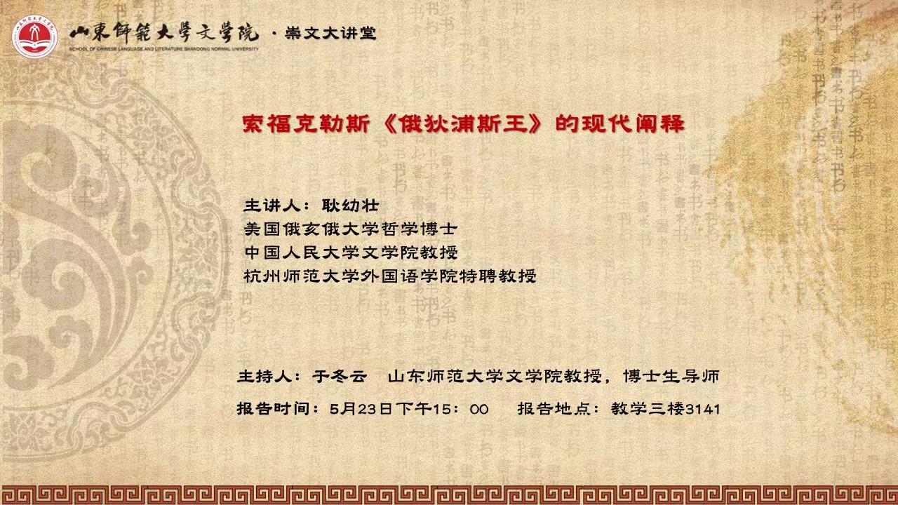 讲座预告:耿幼壮——索福克勒斯《俄狄浦斯王》的现代阐释