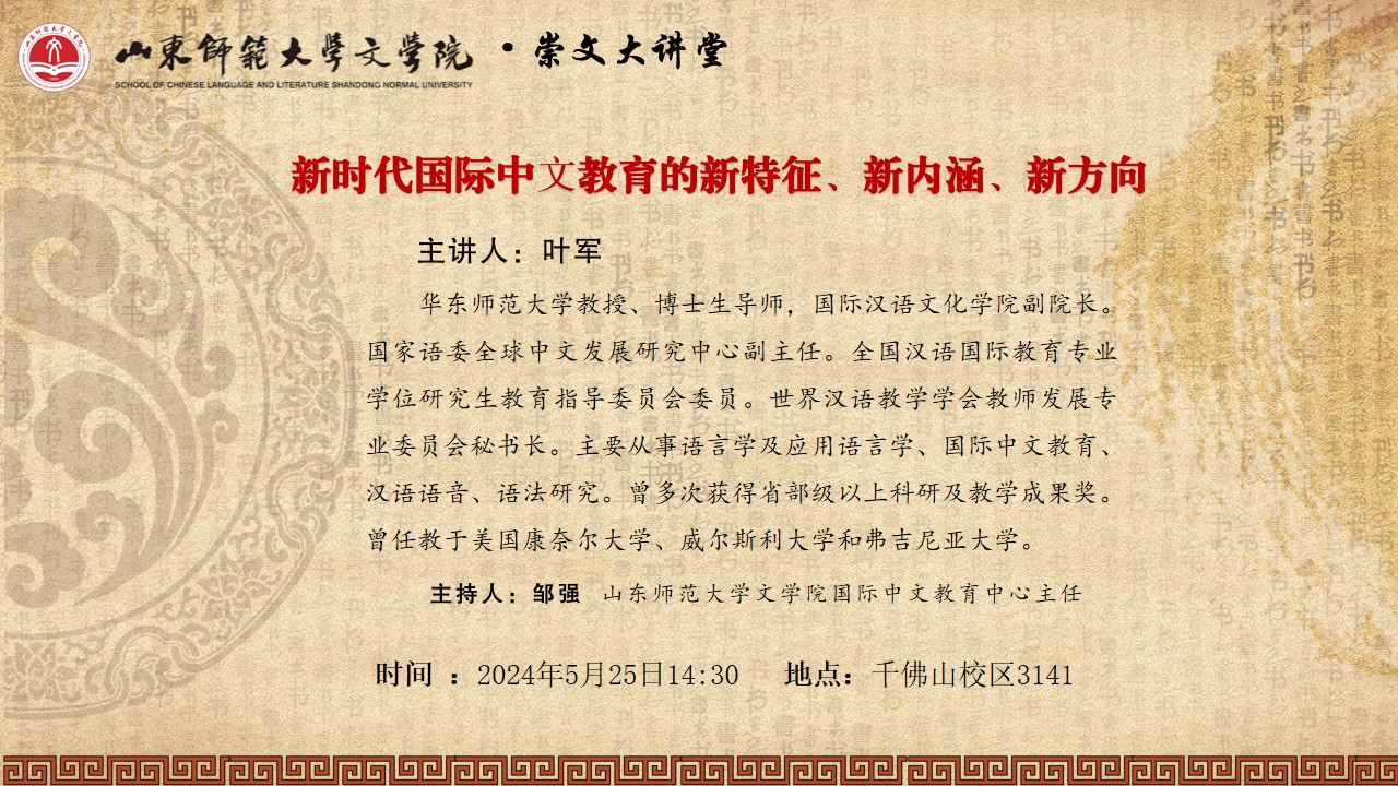 讲座预告:叶军——新时代国际中文教育的新特征、新内涵、新方向