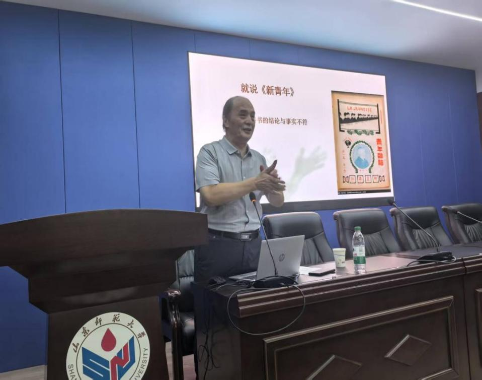 2025年9月24日晚,山东师范大学资深教授、文学院博士生导师魏建教授在千佛山校区教学三楼3543会议室作学术报告,题为“今天如何纪念《新青年》?”。报告会由山东师范大学国际教育学院和文学院中国现当代文学学科联合主办,李宗刚教授主持。国际教育学院和现当代文学学科部分教师及两个学院的研究生100余人参加了报告会。
