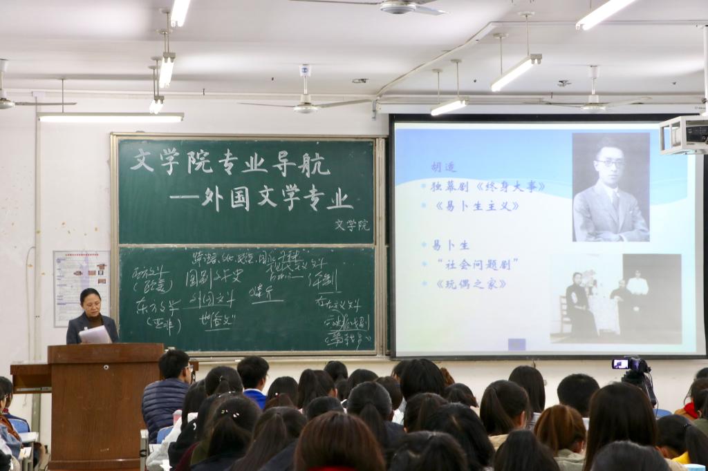 10月23日晚,文学院于长清湖校区综合教学楼C区218教室举办“专业导航”系列交流会。本次交流会由文学院党委副书记巩固主持,邀请文学院副教授、硕士生导师、比较文学与世界文学党支部书记李大可主讲,为到场的二百余名2017级同学带来了对外国文学专业的独到解读。