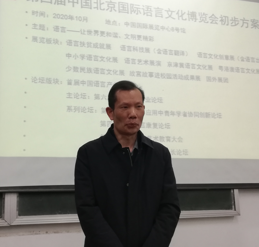 陈长书教授指出当今语言研究的重大转向,即从关注语言学习和使用转变为兼顾语言对国家社会的作用,从立足于本体研究发展到多学科多角度的交叉性研究,而贺宏志正是这一转向的实践者。贺宏志研究员立足于“文化建设”这一基础,从自身所从事的语言管理和语言研究工作出发,总结出“语言文化建设”这一词组,引出本次报告的主题,重点从“一对关系” “三组概念”“四个建设”这三方面展开论述。