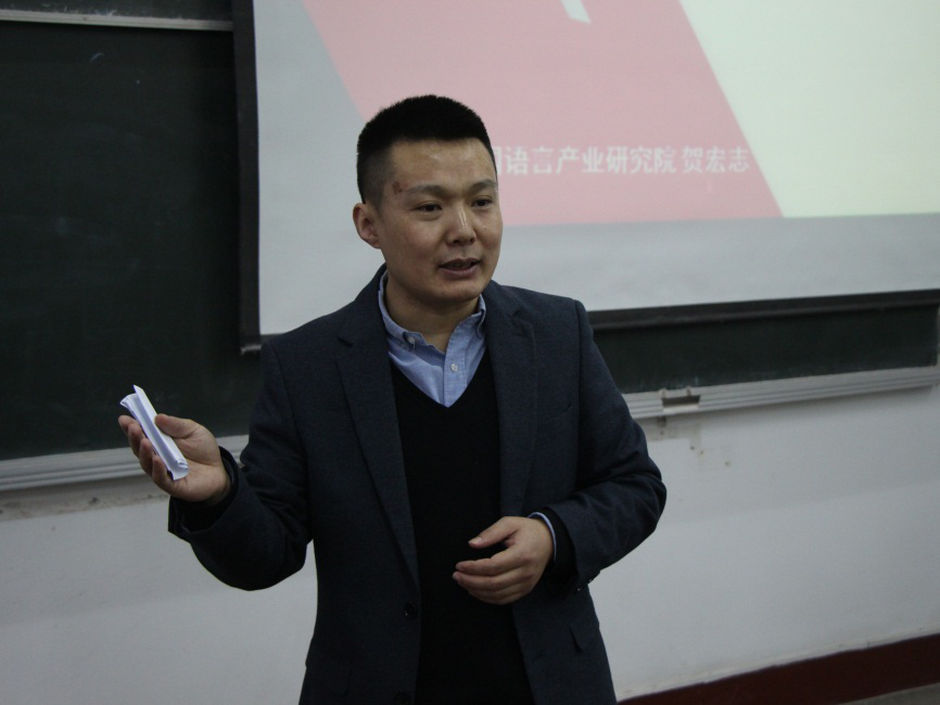 在互动交流环节,云兴华老师谈到了语言产业将语言与经济相联系,使语言变成了一种“看得见,摸得着”的东西,是一种前沿的研究视角。韩品玉所长从“管仲相齐、扁鹊行医”这两个成语使用中存在的错别字和繁简混用的现象分析语言生活问题。在场师生又从“语言产业与文化产业关系”的这一问题出发与贺宏志进行了交流,贺宏志谈到,语言产业与文化产业的关系与语言和文化的关系有同有异,语言隶属于文化,而语言产业与文化产业之间有隶属、交叉和各自独立三种关系,具体判断时要参照国家对文化产业的规定以及语言产业的基本要素——语言产品的特点。