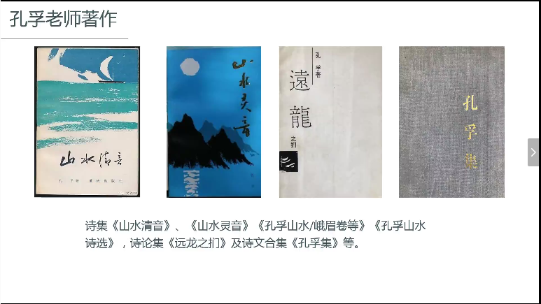 孔孚老师,原名孔令桓,字笑白,1925年4月1日生于山东曲阜。1979年调入山东师范大学文学院(当时的山东师范学院中文系)任教,1986年离休,1997年4月27日病逝。著有诗集《山水清音》《山水灵音》《孔孚山水/峨眉卷等》《孔孚山水诗选》,诗论集《远龙之扪》及诗文合集《孔孚集》等。美国《美洲华侨日报》曾发表的长篇评述文章中称誉孔孚老师是“当今中国诗坛新山水诗派的祭酒”。