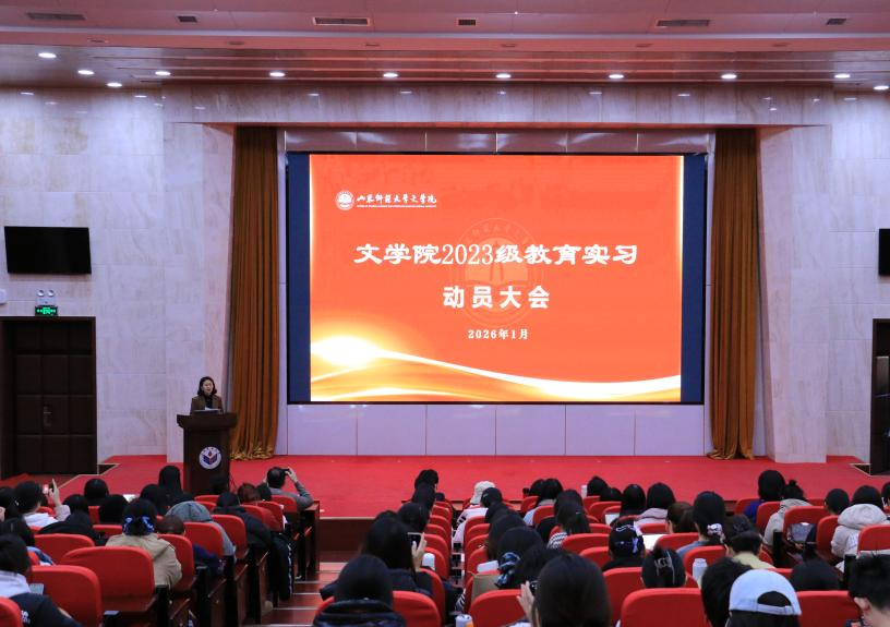 1月20日,文学院在千佛山校区教学三楼报告厅召开2023级教育实习动员大会。文学院院长孙书文,党委副书记、纪委书记李金波,校外指导教师代表、附属中学高二语文备课组组长王玮,学院指导老师代表董炜,2023级辅导员及全体师范生参会。动员大会由2023级辅导员宣文尧主持。