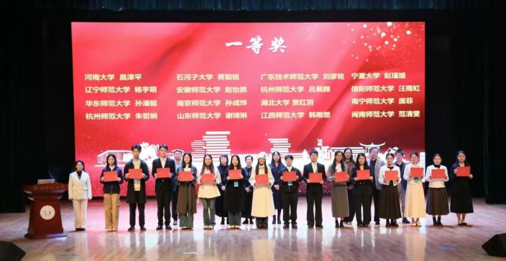 11月9日,2025年全国“田家炳杯”全日制教育硕士专业学位研究生学科教学(语文)专业教学技能大赛决赛在杭州师范大学圆满落幕。文学院2023级学科教学(语文)专业研究生谢琦琳同学荣获一等奖,2024级同专业研究生齐梦瑶同学荣获二等奖,潘庆玉教授荣获优秀指导教师奖,并作为全国获奖选手指导教师代表在大会发言。