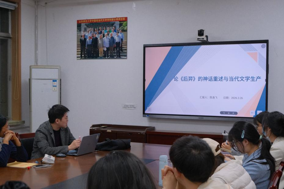 3月26日,文学院历山论坛“论《后羿》的神话重述与当代文学生产”在千佛山校区教学三楼3141会议室举办。本次论坛由文学院2025级中国现当代文学专业博士陈逸飞主讲,2025级学科教学(语文)专业硕士研究生张敏萱担任主持人,文学院部分学生到场参与。