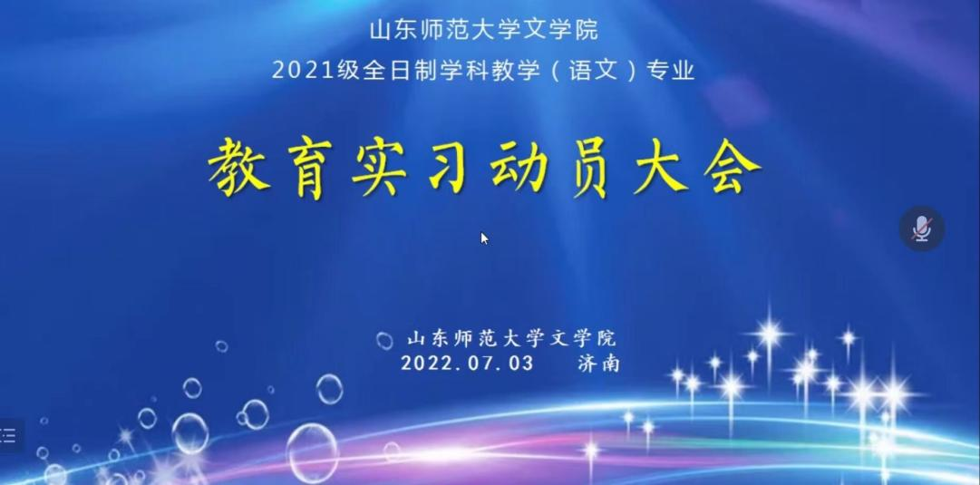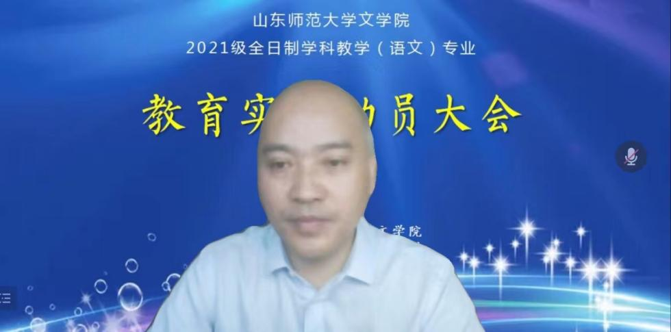为全面贯彻落实山东师范大学教育硕士培养方案,进一步提高学科教学(语文)研究生的教学技能和教师素养,7月3日上午,文学院召开线上2021级全日制学科教学(语文)专业教育实习动员大会。孙书文院长出席会议并讲话,学科教学(语文)专业驻济校外合作导师、校内导师、课程与教学论教研室任课教师以及2021级全日制学科教学(语文)专业全体研究生参加会议。会议由潘庆玉教授主持。