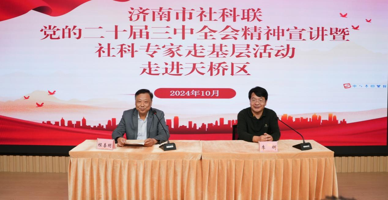 10月16日,文学院教授、博士生导师、教工第三党支部成员李辉走进济南市天桥区,宣讲党的二十届三中全会精神。