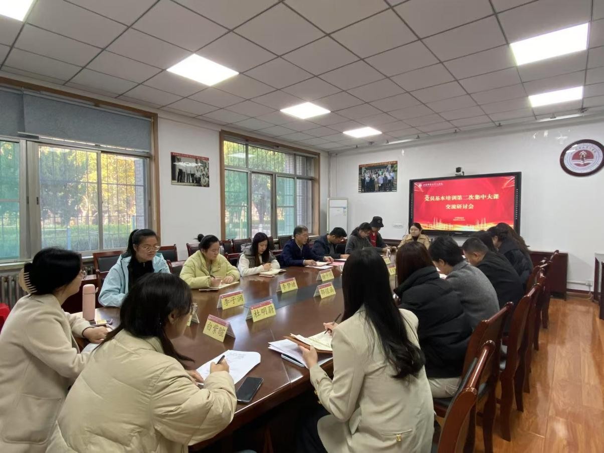 王太峰介绍了学院党委党员基本培训第二次集中大课学习及各党支部交流研讨情况。邵煜函、王菁、杜明蔚、尹一诺围绕培训主题,立足本职工作和学习实际,依次作交流发言。郝迎伟对交流研讨进行了点评,与师生党员交流学习心得体会,并对持续做好党员基本培训工作提出了意见和建议。