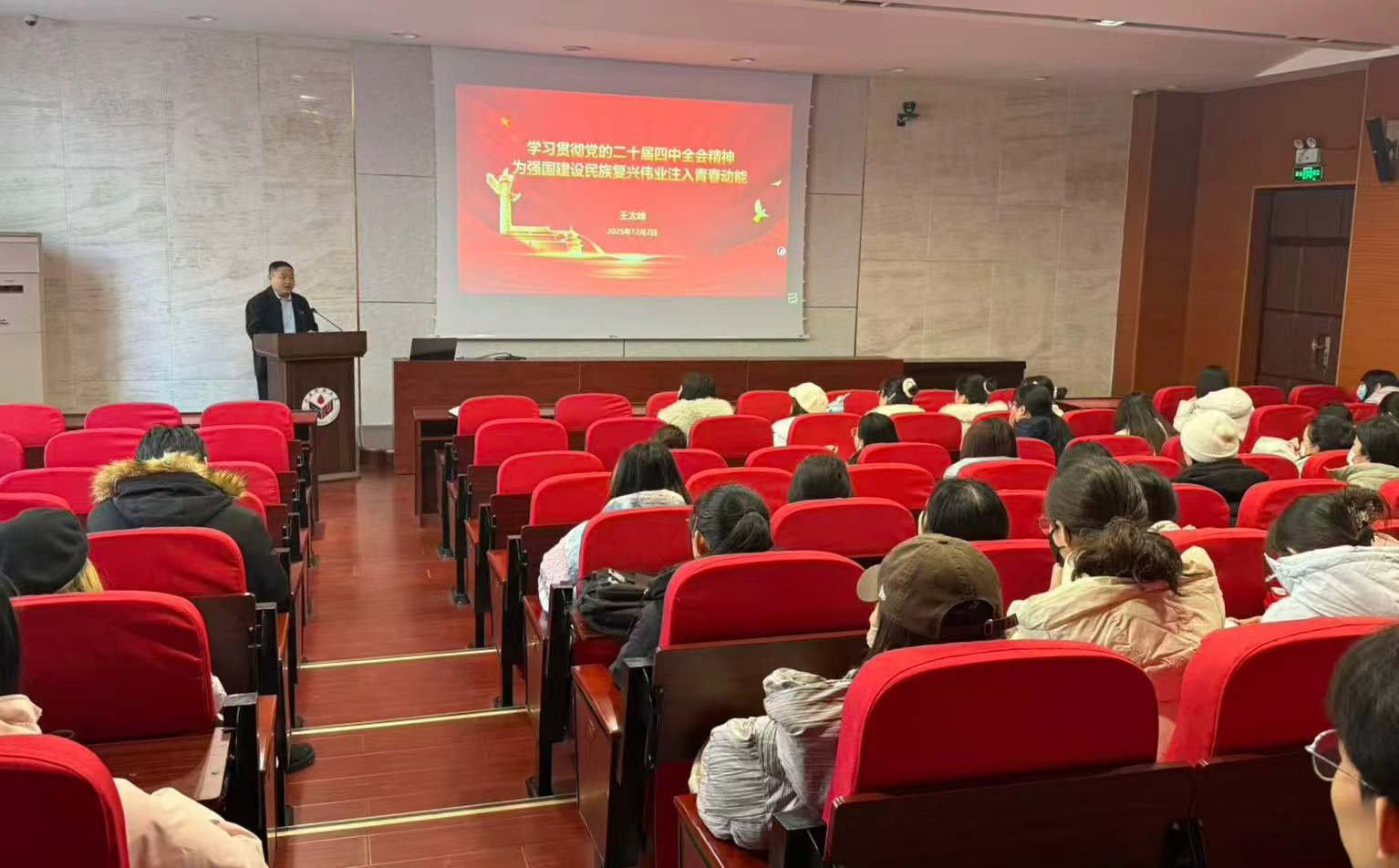 12月2日,文学院党委书记王太峰以“学习贯彻党的二十届四中全会精神 为强国建设民族复兴伟业注入青春动能”为题讲授专题党课。学院新发展党员、辅导员、教工党支部书记代表参加会议。