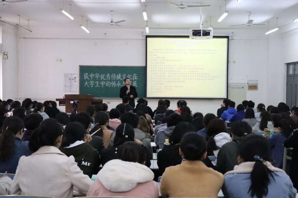 3月15日上午,文学院党委副书记巩固在长清湖校区综合教学楼C区226教室举办“中华优秀传统文化在大学生中的传承与发展”主题思政课。文学院团委书记、2016级辅导员李金波及2017级辅导员李嘉琦,与2016级、2017级学生干部共同聆听了第一堂课。首先,巩固指出继承传统与关照现实相结合的重要性,提出“与时俱进,推陈出新”的要求。他以十九大报告中关于文化传承与发展的相关表述为切入点,阐述了大力传承优秀传统文化的原因,并向同学们提出了实时关注国家文件、积极响应国家政策的要求。随后,巩固指出,想要做好优秀传统文化的传承和创新工作,首要任务便是选择合适的主题与内容,为此,我们需要关注国家文件中对“优秀”的定义,应充分发挥大学生的主体作用、专业教师的指导作用以及学生工作人员的组织协调作用。最后,巩固还提出了在日常生活中体验与传播优秀传统文化的理念,并鼓励大家积极参加“文苑青年说”等文化活动,他与台下同学交流互动,同学们畅谈感悟和见解,各抒己见,气氛热烈。