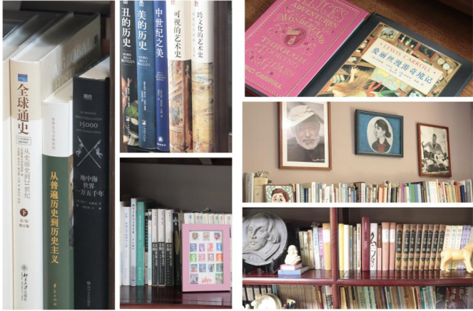 我的书房紧靠厨房,因此在煲汤做饭的间隙,我会读许多个人爱好的书籍。所以,在我的书橱里还有许多我作为兴趣来读的书,像《诗经》《镜花缘》《古希腊神话故事》《艾米丽·狄金森诗歌全集》《爱丽丝漫游仙境记》等等,闲暇时我都会拿过来读一下,中英文版本都读。因此,我认为书房不仅可以是研究学问的场所,它还可以与外界相连,与世界对话,充满生活气息。