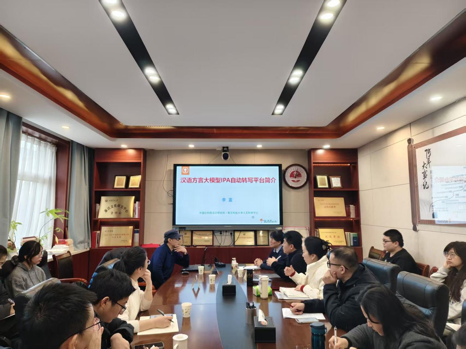 2025年12月25日下午,南方科技大学人文科学中心讲席教授,语文能力与语言认知教研室主任,南方科技大学语音实验室主任,树礼书院院长李蓝教授应邀来到山东师范大学文学院,为师生带来题为“汉语方言语音大模型IPA自动转写平台功能展示”的学术报告。山东师范大学文学院教授张俊阁主持会议,孙书文院长、李建平副院长及古代汉语教研室、现代汉语教研室、古籍整理研究所的王红娟、冯红梅、杨朋飞、王栋、张鑫、闫潇、孙兴金、李丹诸位老师及硕博研究生等共30余人参加了本次活动。