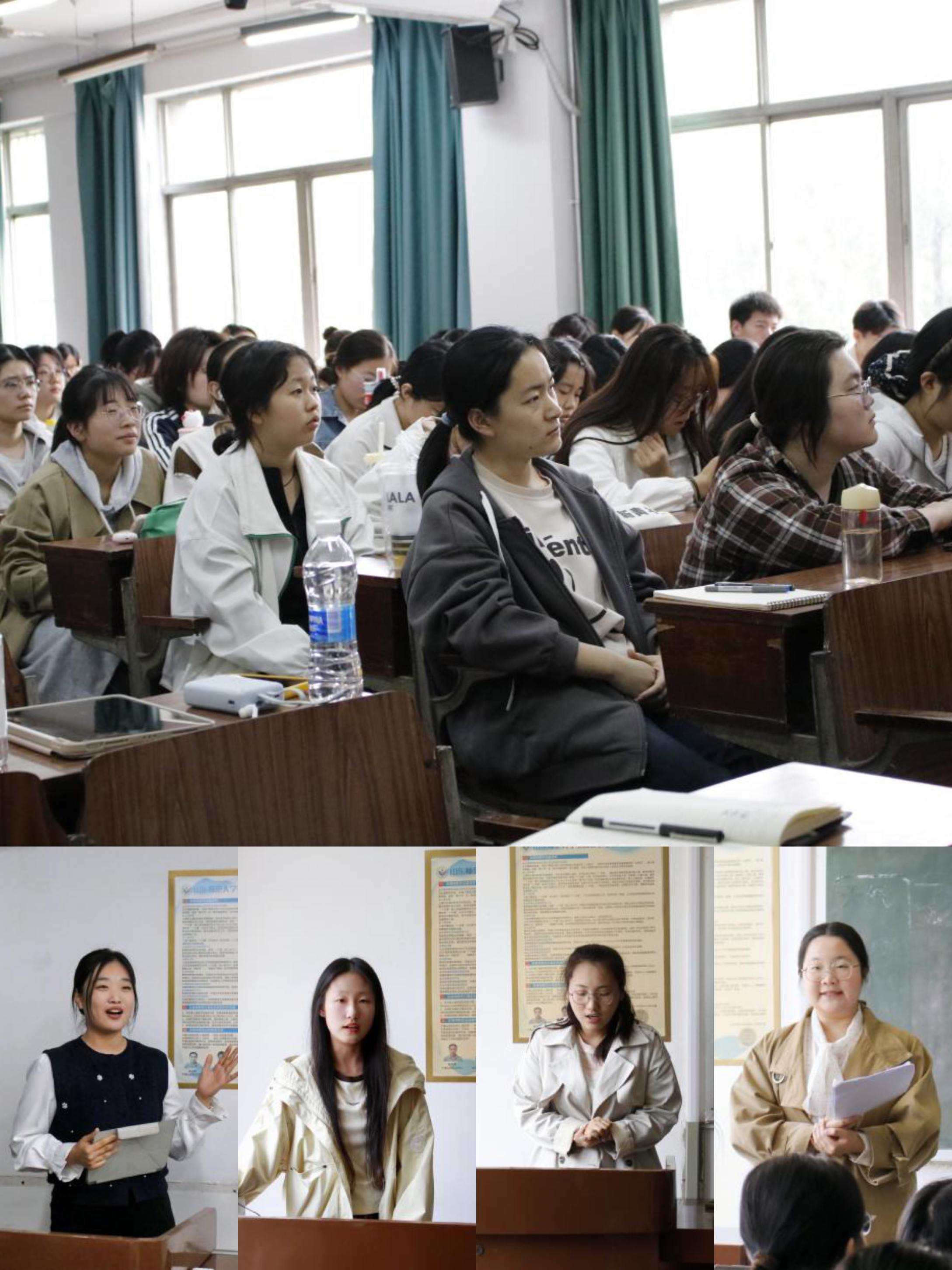 活动邀请了4位2022级在升学与就业方面表现突出的学生代表,为学弟学妹指点迷津。李涵昱现已推免至陕西师范大学现当代文学专业,她结合自身参赛心路历程和实战心得,详细讲解了文科竞赛赛道选择与选题技巧,鼓励同学们“以赛促学”、早做积累;董琪推免至山东大学文艺学,她围绕近年推免政策变化与大学三年阶段规划,分享了专业学习方法、未来专业选择及备考心态调整策略等内容,引导同学们合理安排学业节奏,从容面对竞争;沈佳玉已与浙江温岭市存志外国语中学签约,她细致介绍了各类教师岗位特点、资质准备与能力提升路径,为有意从教的同学指明方向;邢硕文考取郯城市税务局公务员,她真诚分享了公考择业初心与备考全流程,建议同学们提早规划,扎实积累,稳步向就业目标迈进。