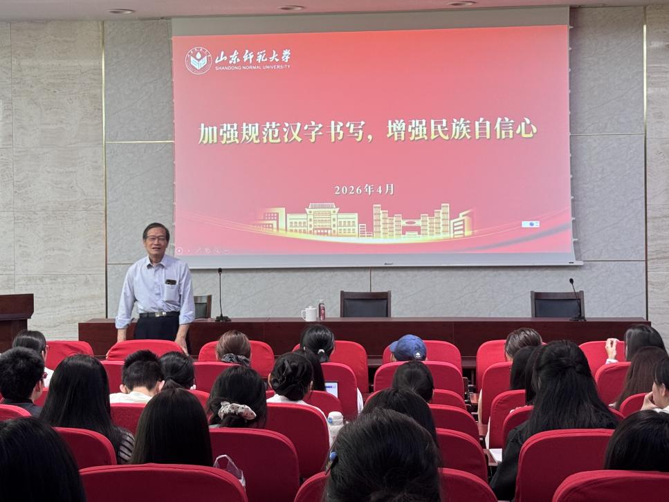讲座中,李宗玮围绕“加强规范汉字书写,增强民族自信心”主题,带领同学们回顾中国共产党百年奋斗的光辉历程,重温近代以来中华民族历经磨难、奋起抗争的峥嵘岁月,着重阐释汉字在赓续中华文脉、筑牢民族根基中的重要作用,引导大家坚定理想信念、汲取奋进力量。他指出,汉字是中华文明活化石,规范书写是守护文化根脉、厚植民族自信的重要途径,书法教育兼具技能培养、人格塑造与精神传承意义。他号召青年学生“写好中国字、做好中国人”,以笔墨传承文脉,以自信担当民族复兴重任。