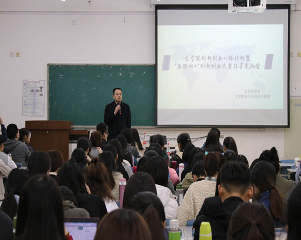 为加强就业指导和创业教育,促进大学生创业创新能力培养。4月10日晚,文学院于长清湖校区综合教学楼C区226教室举办“文学院创新创业训练计划暨‘互联网+’创新创业大赛指导交流会”,文学院特邀美术学院党委副书记、创新创业项目资深专家赵巍担任主讲人,文学院党委副书记巩固担任主持,文学院团委书记、2016级辅导员李金波,2015级辅导员张婷、郑鹏凯与创新创业团队成员共同参与本次交流会。
