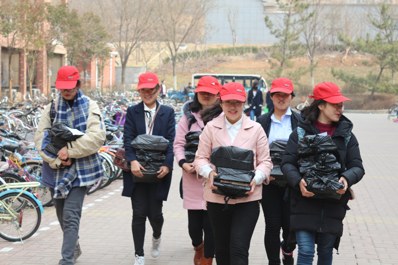 此次活动首先汇总了2015级和2016级同学的“心愿书单”,随后由爱心书屋将全体师生捐赠的图书代收管理,经过文学院外联部的整理、归类,最后通过“送书上门”、“书籍漂流”等多种形式将图书循环利用,实现已读书籍的二次流通与资源共享。春寒乍暖,上午十一点左右,外联部志愿者早已分成了3个小组,准备文学院各个宿舍的同学送去“精神外卖”。按照“心愿书单”上的留名,志愿者们耐心地将图书送至每个宿舍的同学手中,并热情地告知同学们归还日期和借阅注意事项。除此之外,同时进行的“书籍漂流”活动也在火热的开展,该活动以班级为单位,由各班组织委员进行书籍的整理发放,读者以诚信读书,不需任何手续就可以无限期借阅图书,读完后可以在“漂流读书感言本”上留下自己的感言,然后归还图书继续图书漂流。新颖的借阅方式获得了师生的广泛好评,这种好书共享的方式,也让知识因传播而美丽。